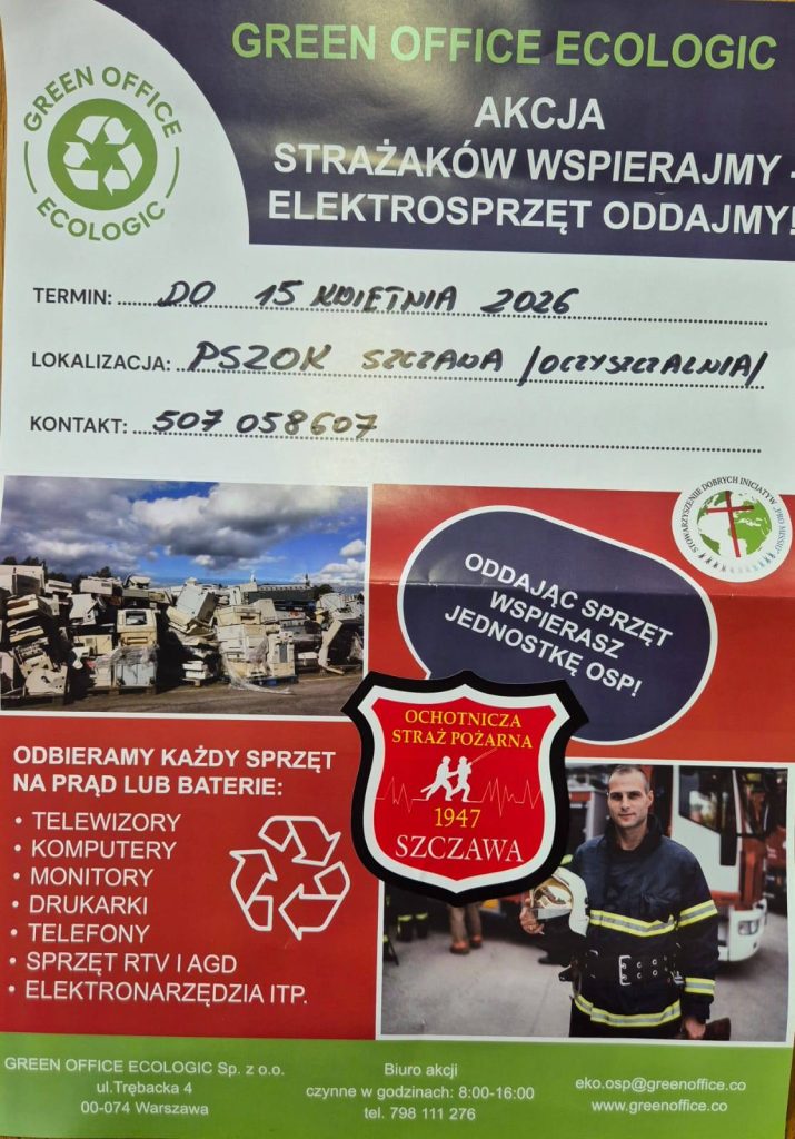 Inicjatywa prowadzona jest w ramach ogólnopolskiej akcji Green Office Ecologic – „Strażaków wspierajmy, elektrośmieci oddajmy”. Zbiórka potrwa do 15 kwietnia 2026 roku.